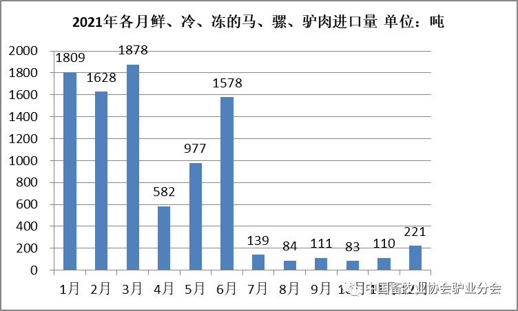 圖6 2021年各月份馬、驢、騾肉進(jìn)口量