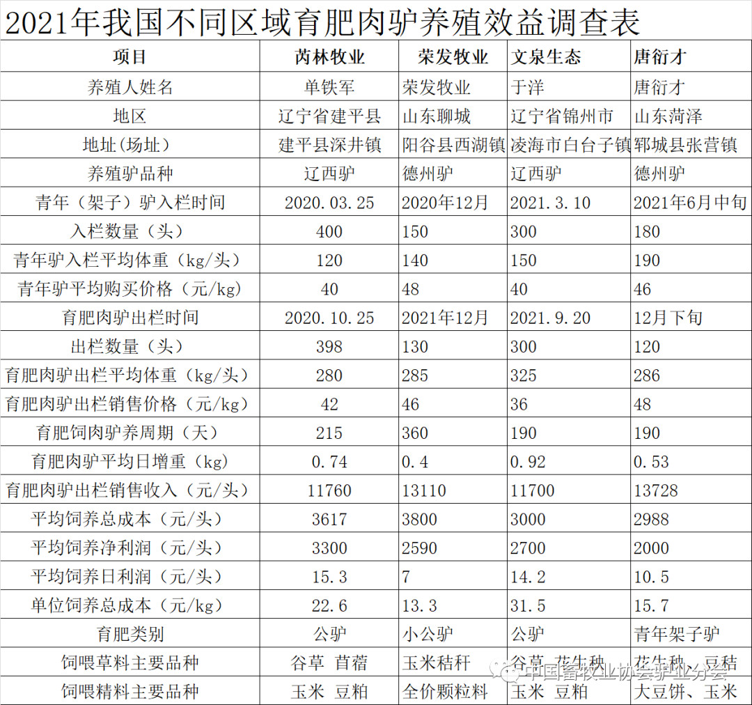 在2018年、2019年購(gòu)入母驢,2020年或2021年產(chǎn)駒,2021年出售,效益多在1 000~3 000元/頭。