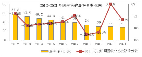 圖2 2012~2021年國(guó)內(nèi)毛驢屠宰量變化