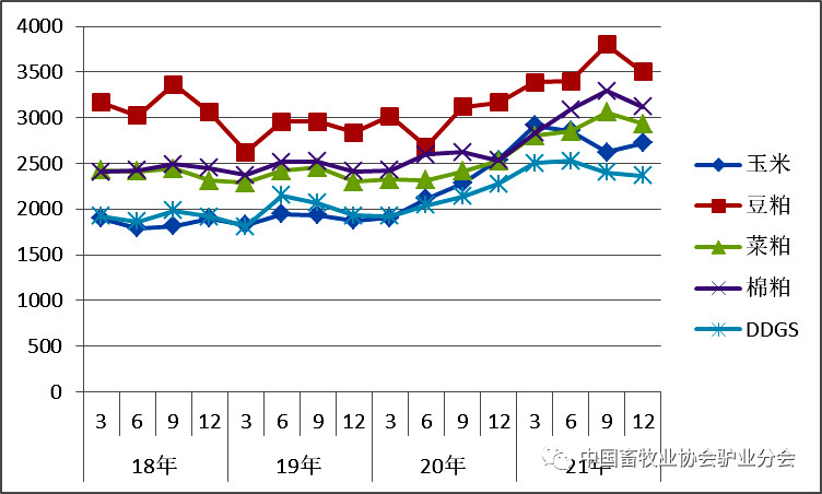 圖9 2018~2021年飼料原料價(jià)格變化