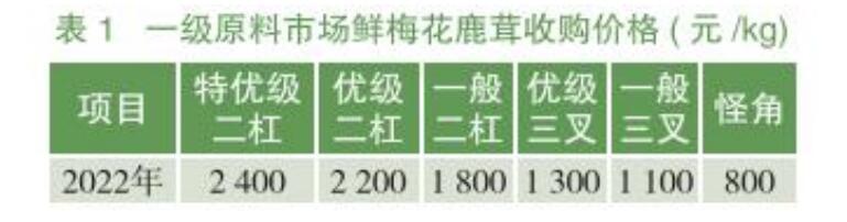 注:鹿茸分級(jí)名稱僅為說明收購(gòu)價(jià)格,不具有嚴(yán)格的分級(jí)標(biāo)準(zhǔn);數(shù)據(jù)來源為鮮鹿茸市場(chǎng)調(diào)研。