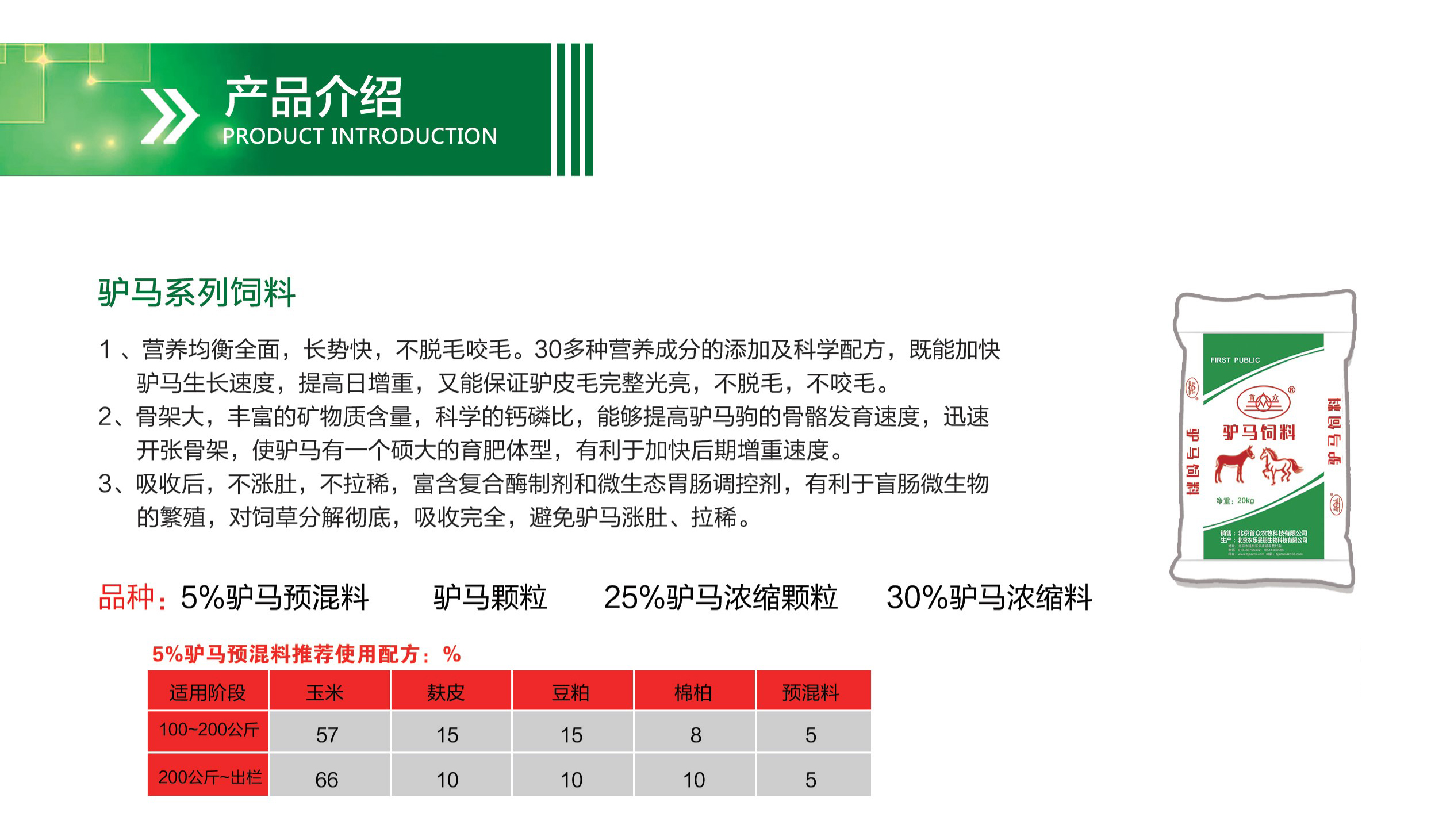 公司依托技術(shù)優(yōu)勢(shì),服務(wù)眾多大型飼料企業(yè)與養(yǎng)殖企業(yè),國(guó)內(nèi)首創(chuàng)15系列分階段草食動(dòng)物配方飼料,生產(chǎn)豬牛羊驢馬全系列飼料,產(chǎn)品深得客戶認(rèn)可,為養(yǎng)殖合理創(chuàng)造經(jīng)濟(jì)效益。