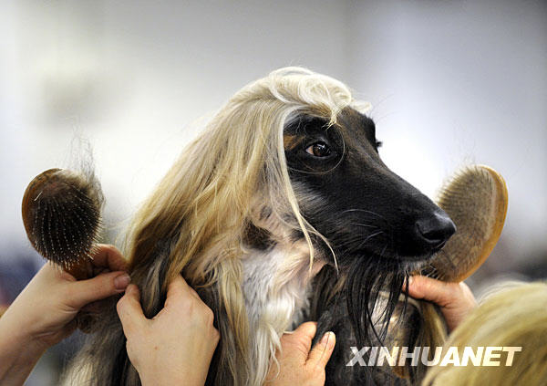 10月17日,在德國多特蒙德舉行的狗和馬動物節(jié)上,人們給一只阿富汗獵犬梳理毛發(fā)。這次的動物節(jié)有來自世界各地大約8000只純種狗參加10月17日到19日舉行的比賽,預(yù)計觀眾將達(dá)到75000人。新華社/法新