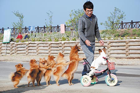 6只狗表演搭肩接龍賺車馬費(fèi)(圖文)