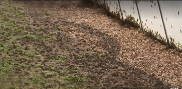 走進河北省保定市阜平縣王林口鎮(zhèn)前辛莊螞蚱養(yǎng)殖基地,一排排養(yǎng)殖大棚格外引人注目。大棚內(nèi)密密麻麻的螞蚱四處飛舞,忙著覓食,養(yǎng)殖負(fù)責(zé)人顧淑芳正忙著給螞蚱大棚通風(fēng)、噴水。