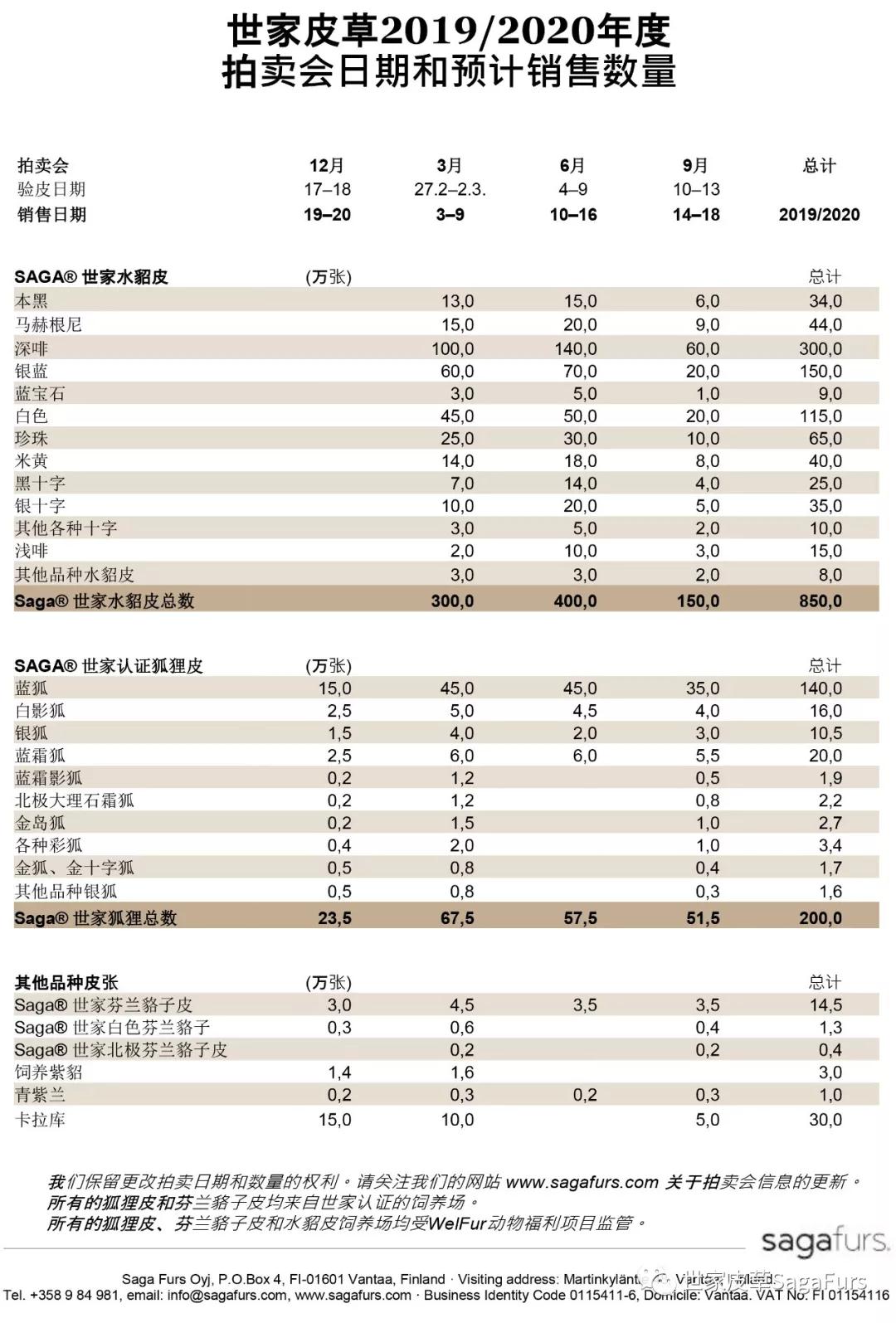 為了您更好地規(guī)劃下一年度拍賣會(huì)行程,世家皮草2019-2020拍賣年度的拍賣會(huì)日期和預(yù)計(jì)銷售數(shù)量現(xiàn)已新鮮出爐。