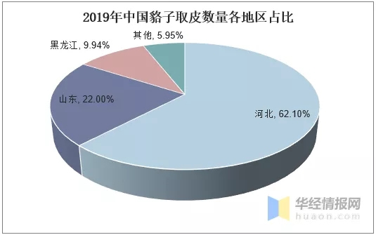 山東不僅是水貂的主要養(yǎng)殖區(qū)也是狐貍的主要養(yǎng)殖區(qū),根據(jù)數(shù)據(jù)顯示,2019年山東狐貍?cè)∑?shù)量占據(jù)全國(guó)狐貍?cè)∑?shù)量的40.2%,其次為河北和遼寧,分別占據(jù)了27.53%和21.77%。而貉子的主要養(yǎng)殖區(qū)在河北,2019年河北貉子取皮數(shù)量占全國(guó)貉子取皮數(shù)量的62.10%,山東及黑龍江貉子取皮數(shù)量占全國(guó)貉子取皮數(shù)量的比重分別為22%、9.94%。