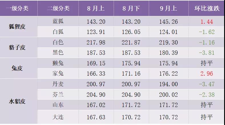 9月上半月,裘皮產(chǎn)品價(jià)格總指數(shù)微幅下滑