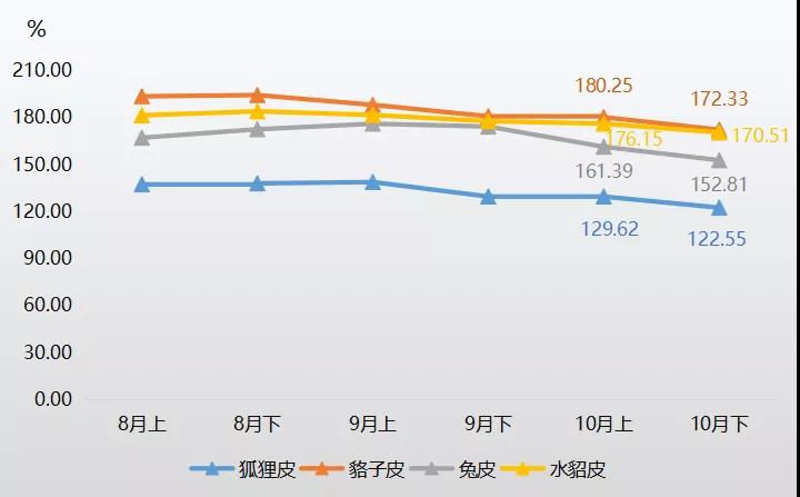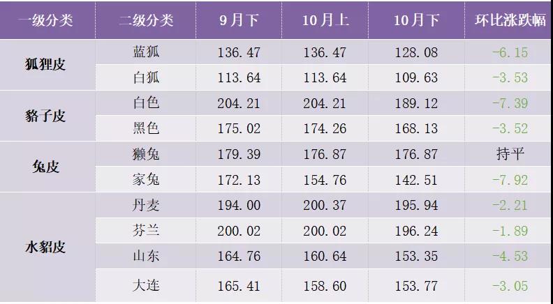 10月下半月,裘皮產(chǎn)品價格指數(shù)繼續(xù)保持穩(wěn)中有降