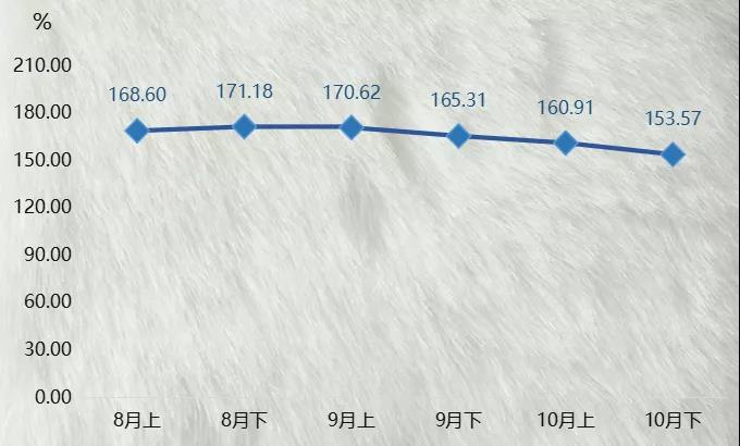 10月下半月,裘皮產(chǎn)品價格總指數(shù)收報153.57點,環(huán)比走低4.56%??偟膩砜?,近三個月裘皮產(chǎn)品價格指數(shù)穩(wěn)中有降,但相比去年同期仍處于較高水平。分析來看,下游服裝產(chǎn)品銷售不暢是裘皮產(chǎn)品價格下滑的根本原因,加上疫情的不確定性影響從裘皮到服裝銷售的各個環(huán)節(jié)。未來隨著氣溫下降冬季來臨,下游產(chǎn)品需求增加,裘皮產(chǎn)品需求量也會隨之增加,推動裘皮產(chǎn)品價格上漲。