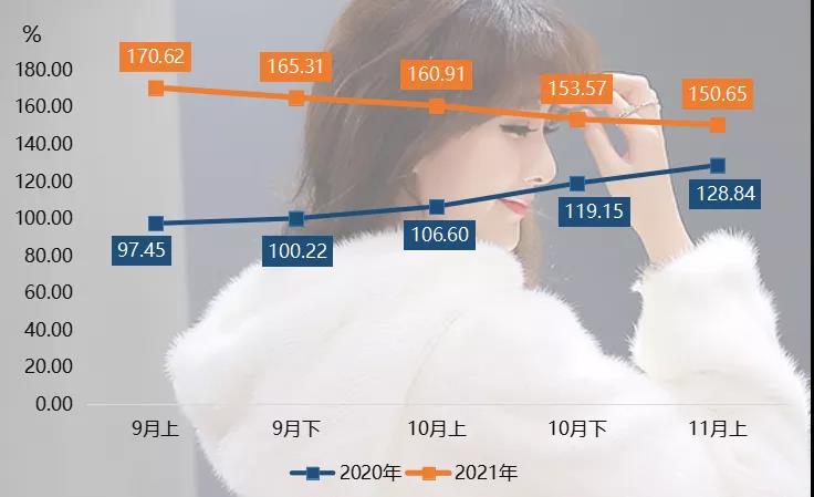 11月上半月,裘皮產(chǎn)品價格總指數(shù)收報150.65點(diǎn),環(huán)比下滑1.90%。整體來看,裘皮價格指數(shù)與去年同期呈反向趨同運(yùn)行態(tài)勢,11月上半月相比去年同期的128.84點(diǎn)仍處于較高水平。分析來看,下游服裝產(chǎn)品銷售不暢仍是裘皮產(chǎn)品價格下滑的根本原因。未來隨著氣溫下降,下游產(chǎn)品需求增加,裘皮產(chǎn)品市場行情也將逐步好轉(zhuǎn)。