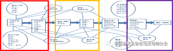 毛皮動(dòng)物產(chǎn)業(yè)鏈?zhǔn)且粋€(gè)包含產(chǎn)品價(jià)值鏈、企業(yè)鏈、供需鏈三個(gè)維度的概念。上游、中游和下游企業(yè)是相互依存的。沒有上游養(yǎng)殖業(yè)提供的原材料,下游企業(yè)猶如巧婦難為無米之炊;若沒有下游企業(yè)生產(chǎn)制品投入市場,上游養(yǎng)殖業(yè)的皮張也將英雄無用武之地。