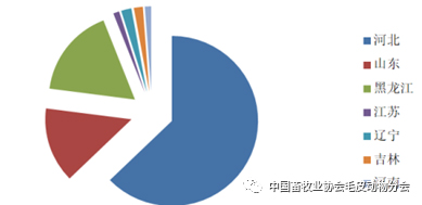 我國毛皮動(dòng)物養(yǎng)殖分布于山東、河北、黑龍江、吉林、內(nèi)蒙古、山西、陜西、寧夏、新疆、安徽、江蘇、天津(市)、北京(市)十四個(gè)省市區(qū),面積跨度約為467萬平方公里,主要養(yǎng)殖區(qū)集中在山東、河北、遼寧、黑龍江與吉林省境內(nèi),約占全國養(yǎng)殖總量的95%。