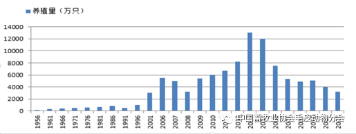 圖5 中國毛皮動(dòng)物產(chǎn)業(yè)規(guī)模變化(萬只)