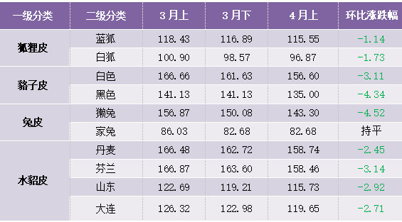 4月上半月,裘皮產(chǎn)品價格指數(shù)延續(xù)下滑態(tài)勢 !