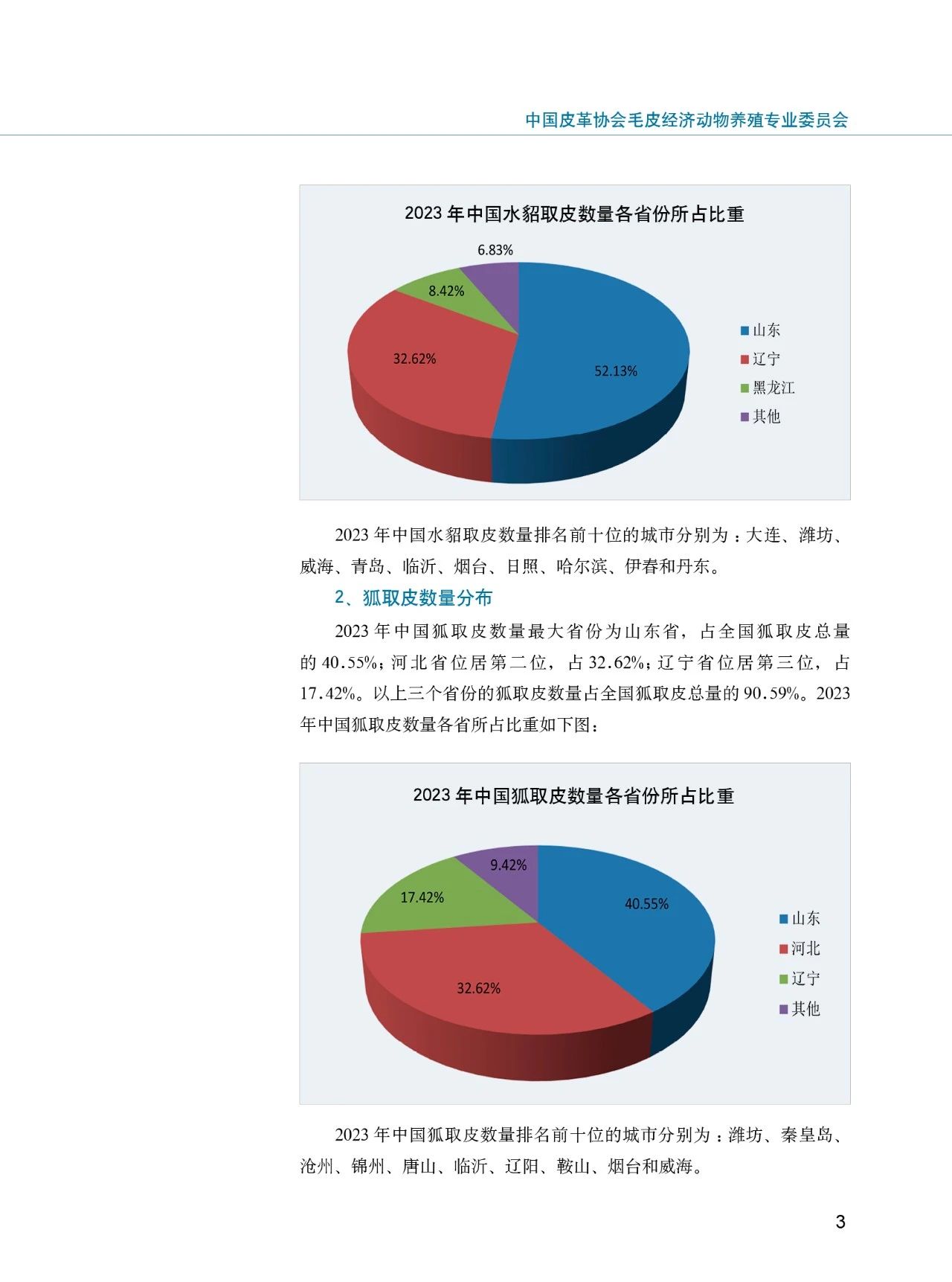 中國(guó)水貂、狐、貉取皮數(shù)量統(tǒng)計(jì)報(bào)告(2023年)