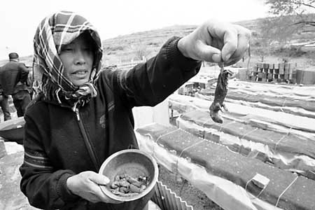 圖片說明:養(yǎng)殖場的女主人向記者展示貂崽的尸體。