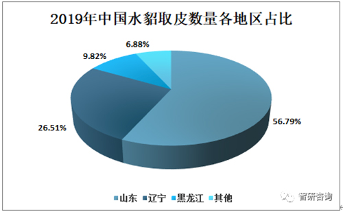 山東、遼寧、黑龍江地區(qū)為中國(guó)水貂、狐貍、貉子取皮的主要地區(qū),2019年山東水貂取皮數(shù)量占全國(guó)水貂取皮數(shù)量的56.79%;遼寧及黑龍江水貂取皮數(shù)量占全國(guó)水貂取皮數(shù)量的比重分別為26.51%、9.82%。