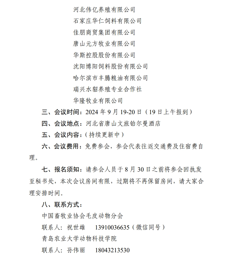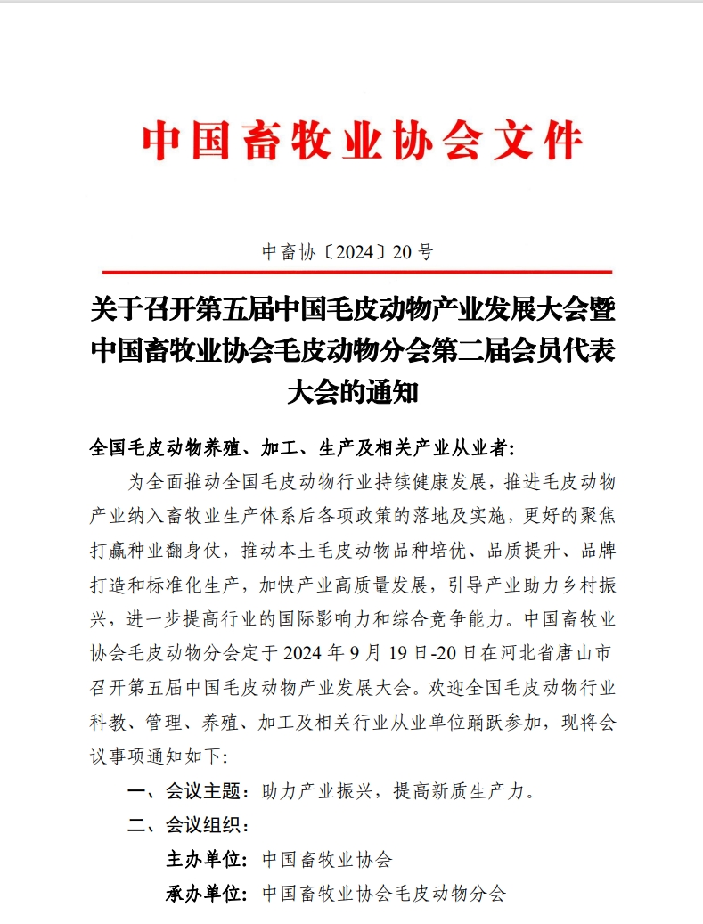 關(guān)于召開第五屆中國毛皮動物產(chǎn)業(yè)發(fā)展大會暨中國畜牧業(yè)協(xié)會毛皮動物分會第二屆會員代表大會的通知