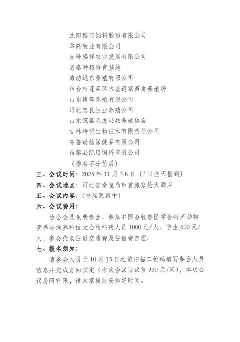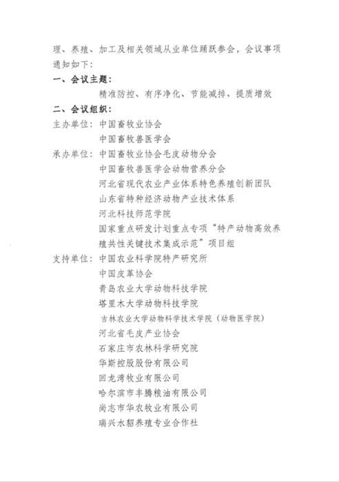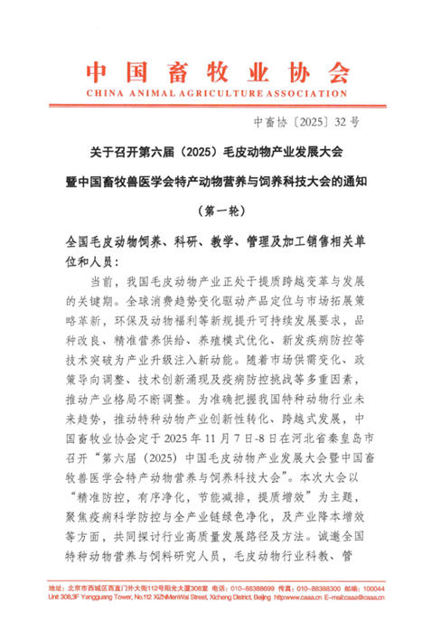 關(guān)于召開第六屆(2025)毛皮動物產(chǎn)業(yè)發(fā)展大會暨中國畜牧獸醫(yī)學(xué)會特產(chǎn)動物營養(yǎng)與飼養(yǎng)科技大會的通知