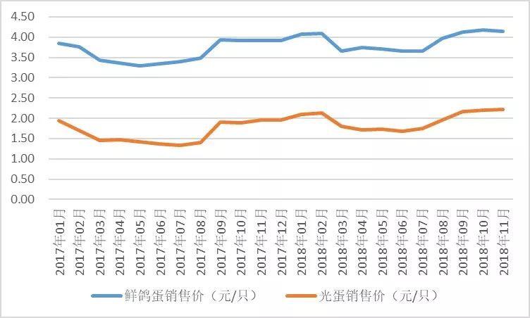 11月份,監(jiān)測企業(yè)鴿蛋均價為4.15元/只,環(huán)比略有下調(diào),同比略有增加。參考去年同期,總的來看,鴿蛋價格同樣進(jìn)入了高位運(yùn)行通道。從價格水平上看,本輪鴿蛋價格也是高于往年同期的。