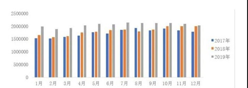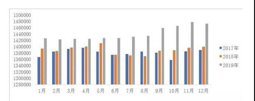 從年度趨勢看,2019年監(jiān)測企業(yè)在產(chǎn)種鴿存欄量為近三年最高,且每月均高于往年。尤其是下半年,種鴿企業(yè)均是盡可能擴(kuò)產(chǎn),存欄量增長較大,至12月份,才出現(xiàn)回落跡象。