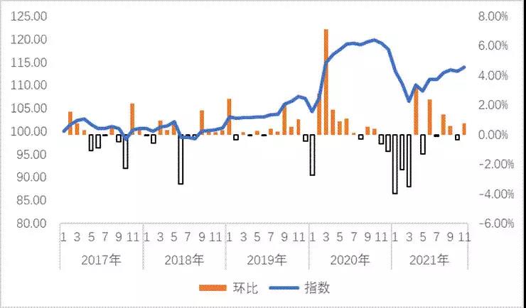 圖1 產(chǎn)鴿存欄指數(shù)(以2017年1月產(chǎn)能為100)與環(huán)比波動(dòng)