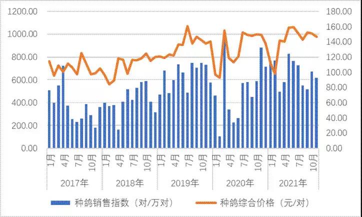 圖2 種鴿銷售指數(shù)與價(jià)格