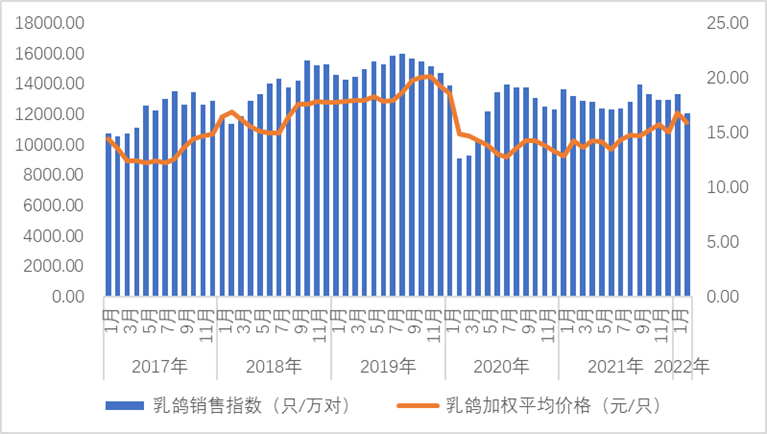 圖2、種鴿銷售指數(shù)與綜合價格