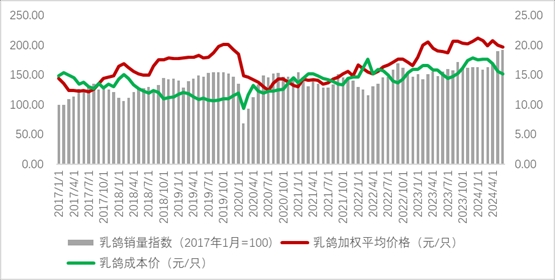 本期,鴿蛋價格3.86元/枚左右,光蛋價格則為2.43元/枚,環(huán)比持平。從結(jié)構(gòu)上看,本期鴿蛋價格企穩(wěn)為主,但降幅收窄,進入季節(jié)性上調(diào)階段。