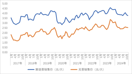 本期,監(jiān)測(cè)企業(yè)鴿蛋和光蛋平均價(jià)格分別為3.77元/枚和2.55元/枚,價(jià)格環(huán)比下跌2%和1%,均為一般性波動(dòng)。