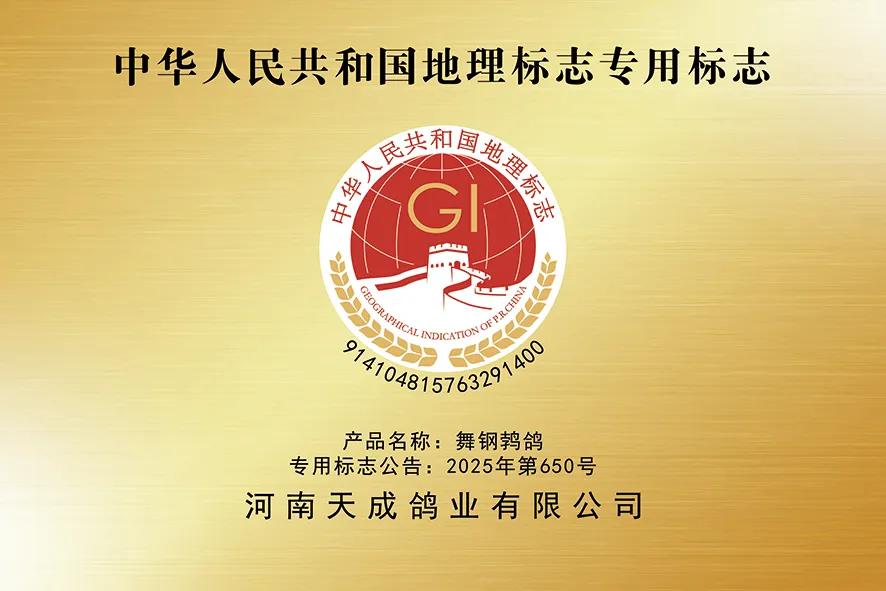 天成鴿業(yè)“舞鋼鵓鴿”入選國家地理標(biāo)志保護(hù)產(chǎn)品目錄