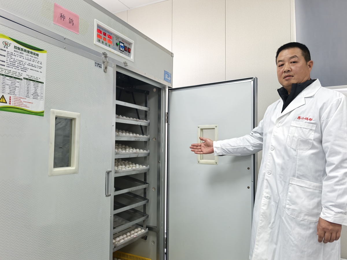 走進愚公鴿幫的孵化車間,三臺全自動鴿子孵化機整齊排列,恒溫恒濕的環(huán)境里,鴿子蛋靜靜孕育著新生命,部分已破殼的鴿仔發(fā)出清脆叫聲。“鴿子蛋在這里孵化18天就能破殼,工作人員會根據(jù)生產(chǎn)日期,把鴿仔送到對應的種鴿媽媽身邊喂養(yǎng)。”趙九高介紹道。