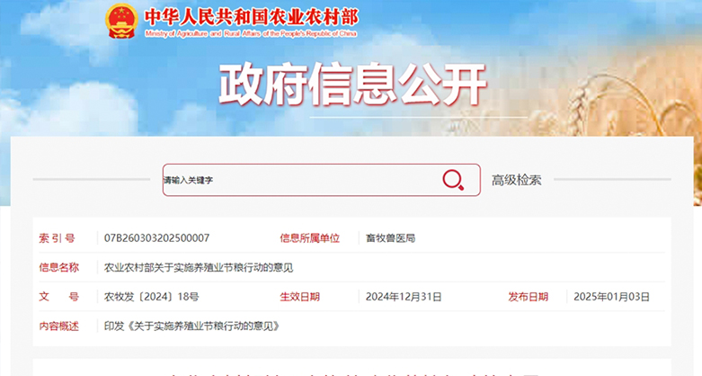 農(nóng)業(yè)農(nóng)村部發(fā)布關(guān)于實(shí)施養(yǎng)殖業(yè)節(jié)糧行動(dòng)的意見(jiàn)