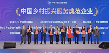 首屆中國(guó)農(nóng)業(yè)企業(yè)家峰會(huì)頒獎(jiǎng)現(xiàn)場(chǎng)?! ?2月12日,首屆中國(guó)農(nóng)業(yè)企業(yè)家峰會(huì)在京召開(kāi),“2020中國(guó)鄉(xiāng)村振興服務(wù)典范企業(yè)10強(qiáng)”榜單揭曉,阿里巴巴(中國(guó))有限公司位列