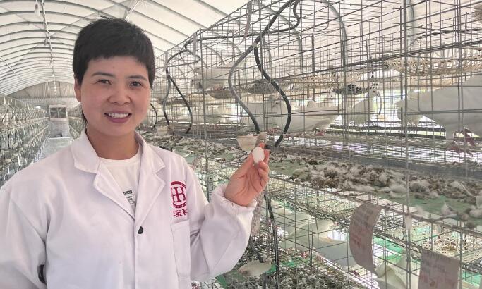 (養(yǎng)殖戶李小俊正在查看鴿子蛋質(zhì)量)