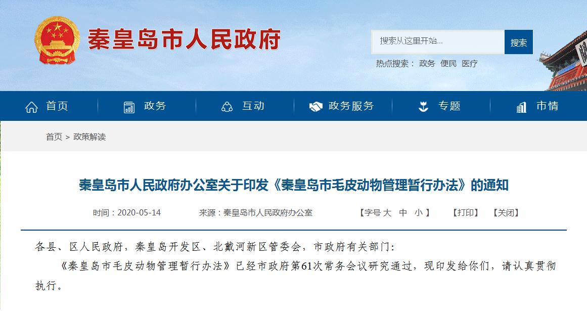 各縣、區(qū)人民政府,秦皇島開發(fā)區(qū)、北戴河新區(qū)管委會,市政府有關(guān)部門: 《秦皇島市毛皮動物管理暫行辦法》已經(jīng)市政府第61次常務(wù)會議研究通過,現(xiàn)印發(fā)給你們,請認(rèn)真貫徹執(zhí)行。