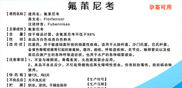 氟苯尼考又稱氟甲砜霉素,是化學(xué)合成的第三代酰胺醇類獸用抗菌劑,是動物專用廣譜快效抑菌劑。對革蘭氏陽性菌、革蘭氏陰性菌、支原體等都有一定的抑制作用,尤其