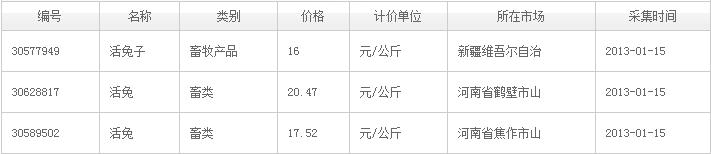 2013年1月17日河南、新疆最新活兔價格行情(圖文)