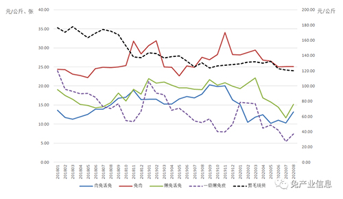 一、2020年8月養(yǎng)殖戶兔及兔產(chǎn)品銷售價(jià)格變化