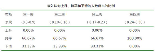 表2 認(rèn)為上升、持平和下滑的人數(shù)所占的比例
