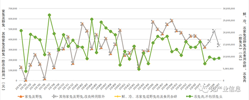 3、2020年8月份月度報(bào)告加入了7月份的海關(guān)數(shù)據(jù)。出口的兔產(chǎn)品主要有家兔及野兔、其他家兔及野兔(改良種用除外)、兔肉、凍兔肉(不包括兔頭)、未縫制整張兔皮、已梳兔毛、兔毛制針織鉤編套頭衫、開襟衫、外穿背心等;進(jìn)口產(chǎn)品有整張兔皮、未縫制整張兔皮、兔毛制針織鉤編套頭衫、開襟衫、外穿背心等。