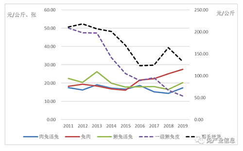 圖1 2011年—2019年兔及兔產(chǎn)品平均價(jià)格走勢(shì)