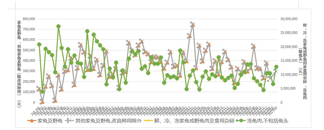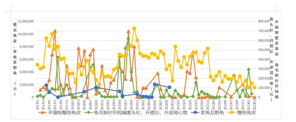 圖6 2017年1月-2023年3月其他兔產(chǎn)品出口額走勢