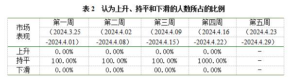 2. 與2024年3月份相比,2024年4月份中除第五周數(shù)據(jù)缺失外,其余每一周的銷售情況為100%持平。