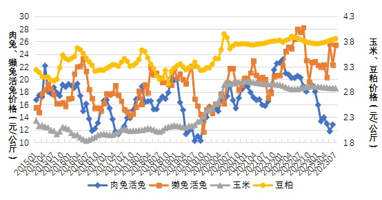 圖8 2015年1月以來活兔收購(gòu)價(jià)格及飼料價(jià)格