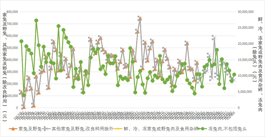 圖6 2017年1月-2024年3月其他兔產(chǎn)品出口額走勢(shì)