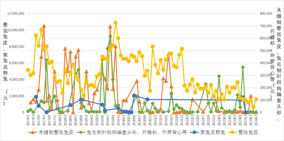 圖7 2017年1月-2024年3月兔產(chǎn)品進(jìn)口額走勢(shì)