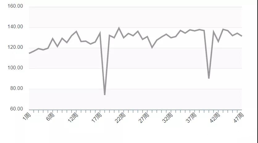 最近一周兔產(chǎn)業(yè)表現(xiàn)為131.59,與上周相比下降2.12%