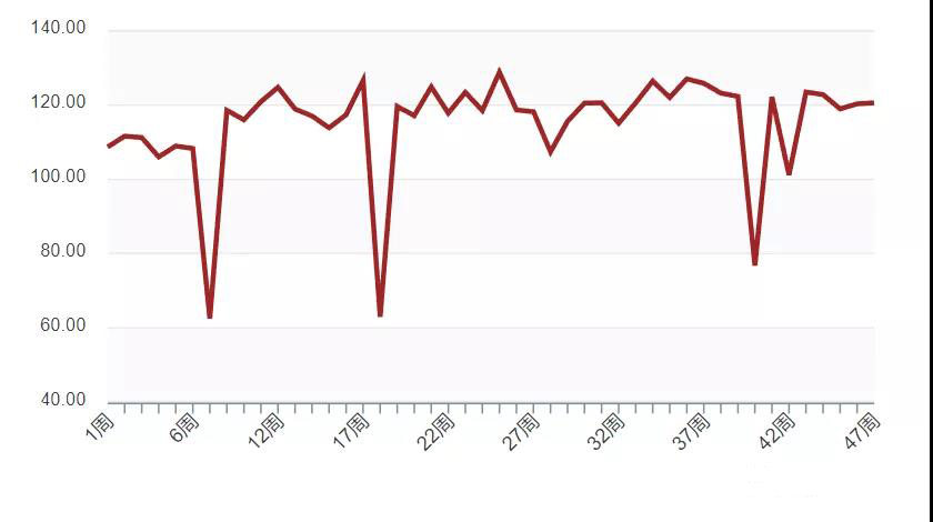 最近一周獺兔產(chǎn)業(yè)表現(xiàn)為120.65,與上周相比上升0.23%